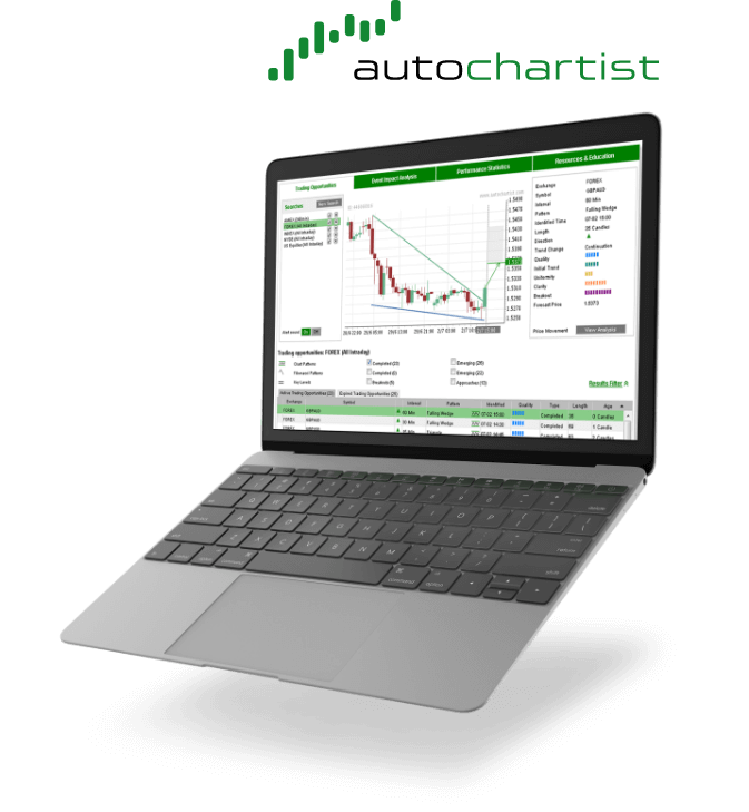 Autochartist는 세계 최초의 시장 스캐너 플러그인입니다. 250개 이상의 CFD를 하루 24시간 모니터링하며 주요 거래 기회와 예상 가격과 일치할 확률이 가장 높은 추세에 대해 트레이더에게 자동으로 알림을 보냅니다.